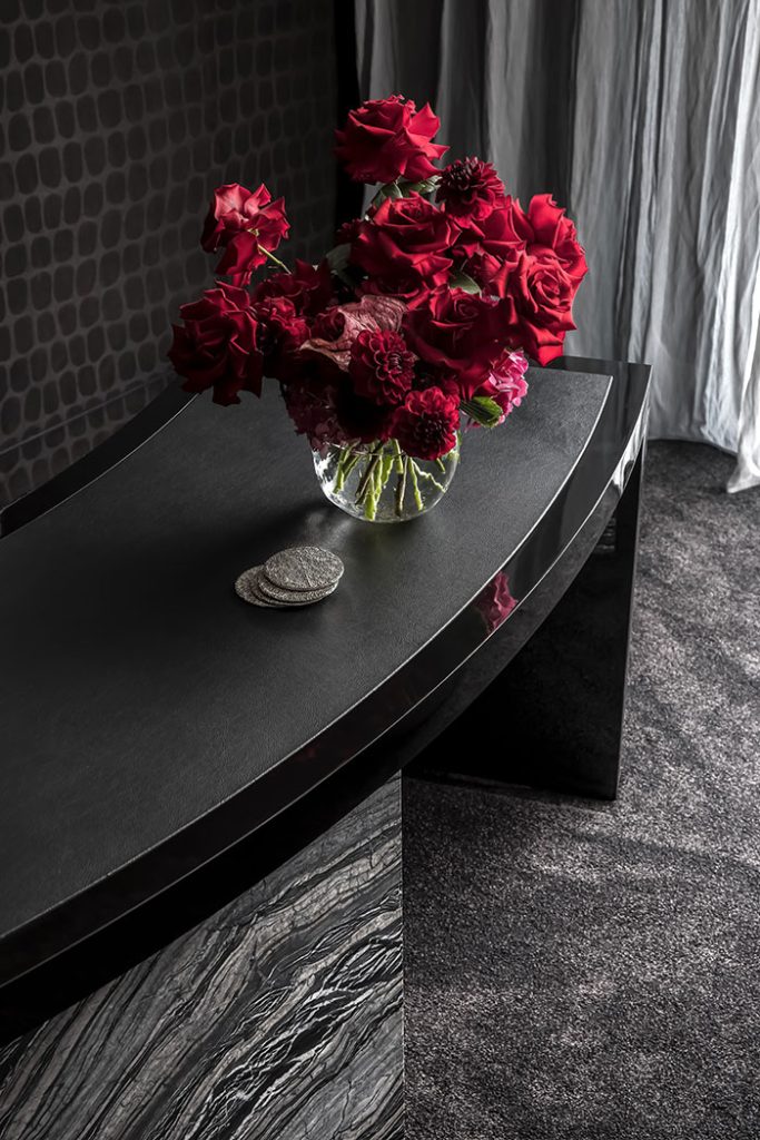 The immaculate dark and polished signature materials, complimented by the use of soft silky textiles, assists in creating a persuasive, matured palette. this mastered expression of sophistication is heightened upon entry, alluring a sense of power and control.